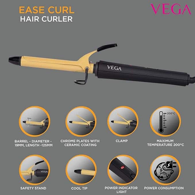 - Buy Vega ease curl 19mm barrel hair curler at an exclusive price of 1,295.